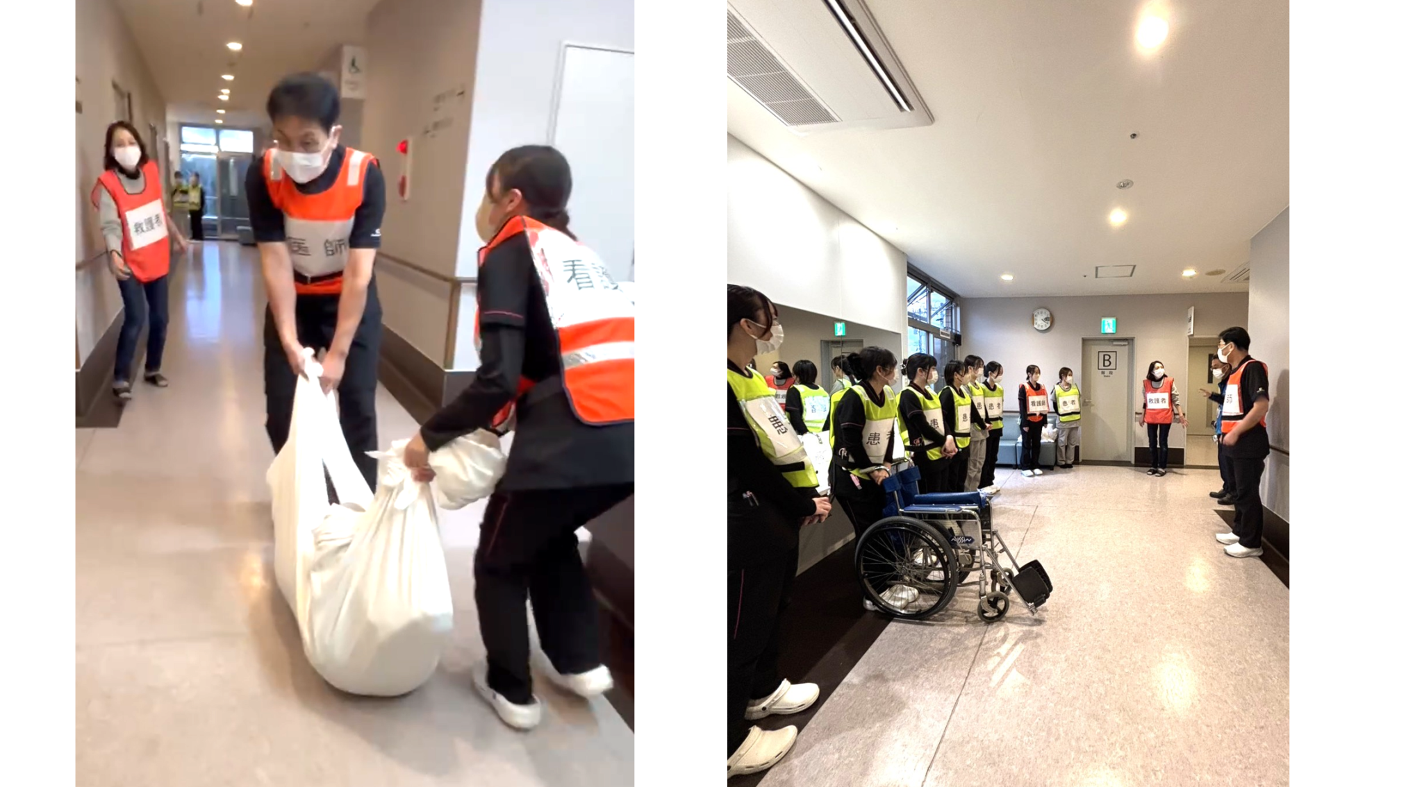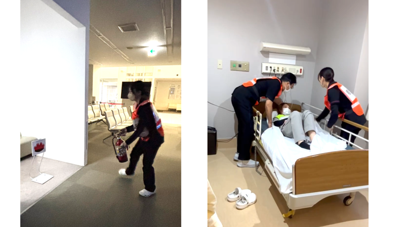 夜間の火災を想定した避難訓練と水害発生時の避難誘導の研修を行いました。