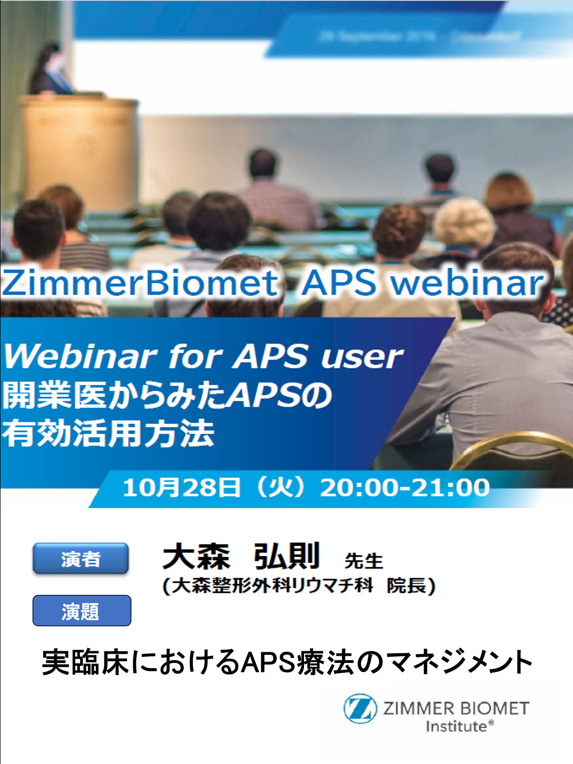 令和7年10月28日に、Zimmer-Biomet主催の「APS webinar」にて、院長が「実臨床におけるAPS療法のマネジメント」という講演をLIVE配信で行いました。。